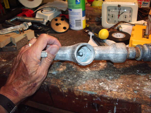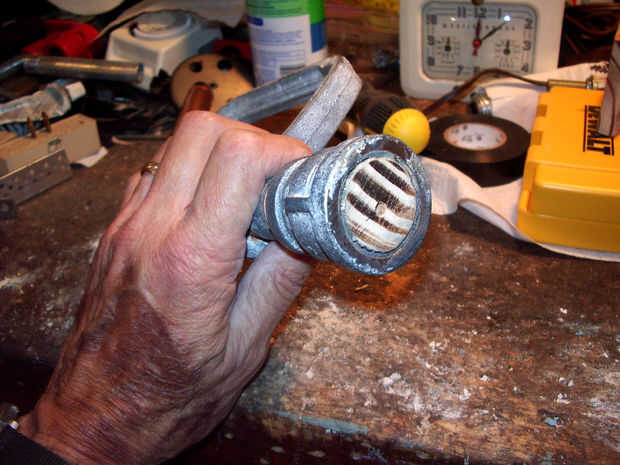 Ya que tengo que enrutar el cable de la lámpara por el interior de la tobera de gas, quité la válvula de la boquilla. Esto fue fácil, he quitado la conexión desde la parte superior de la boquilla y simplemente sacó el resorte y la válvula (Foto 2). Esto me dio un montón de espacio para el cable de la lámpara.