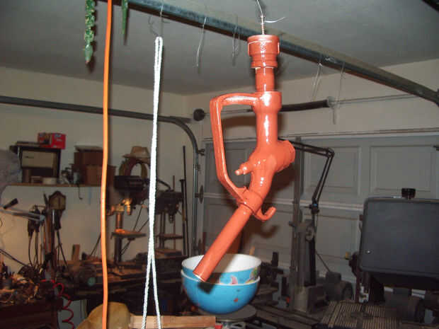 Nuestra casa vieja todavía tiene algunas de las líneas de gas (ya desconectado) original aplastó hacia fuera en las paredes.  Estaba pensando en cómo hacer una lámpara de gas mira relativamente realista sin necesidad de un cable eléctrico colgando de