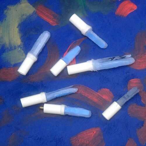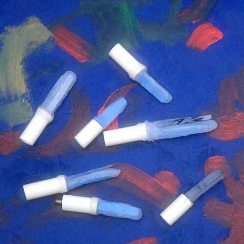 Tengo plástico baquetas con cabeza de goma. Golpear los palos juntos y hay un sonido agudo. Golpear las cabezas de goma juntos y hay un suave chasquido sordo.