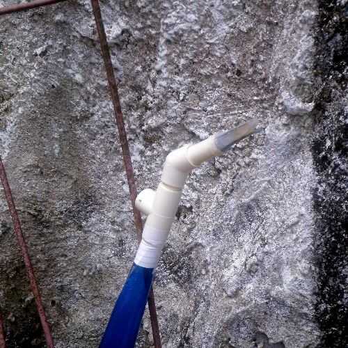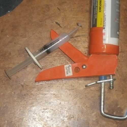 I ruede para arriba la película y sujétela con cinta de enmascarar. Luego, empaque de la jeringa con silicona del cartucho grande, exprimir algunas debajo del borde y cinta hacia abajo más lejos hasta que la silicona se endurece hasta. Yo suelo utilizar algunos silicona y cinta aislante para unir el cuerpo de la película en la conexión de CPVC.