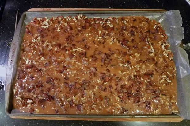 Espolvoree el tocino picado y sal marina gruesa sobre la parte superior.  Sé agregar más sal a esto suena como locura, pero realmente no es por la borda.  Prueba ambas formas y ver lo que te gusta!