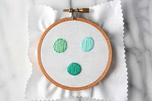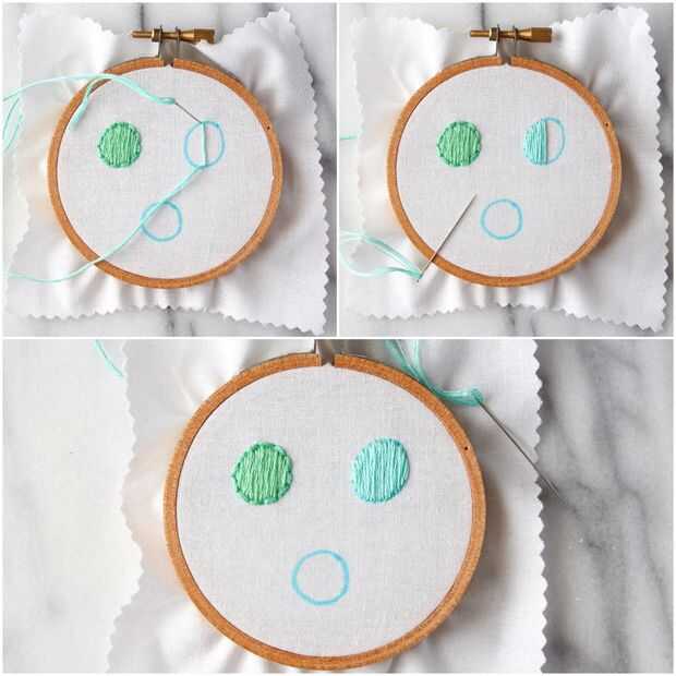 Práctica satén coser, primero dibujar una forma simple en su tela. Luego use un pespuntes para dibujarla. Entonces simplemente vas hacia adelante y hacia atrás a través de la forma (siempre me gusta empezar en el centro y su personal preferencia.) hasta que se llene.