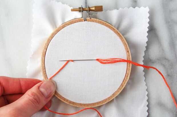 - seguir manteniendo el hilo tenso y tire de la aguja a través de todo el camino.
