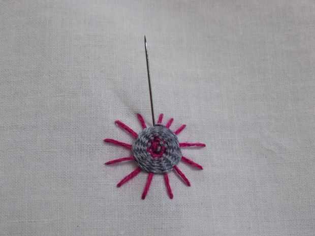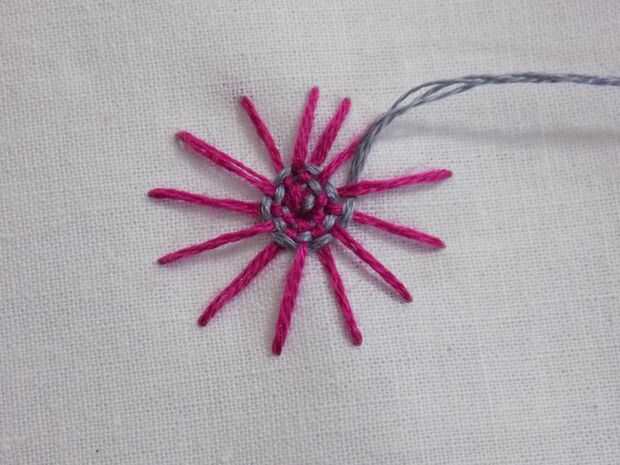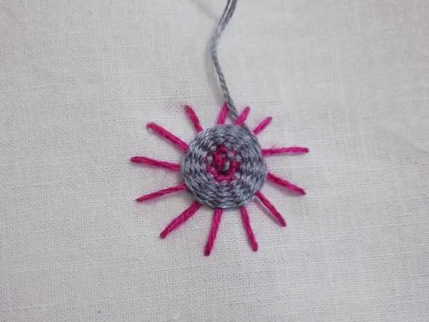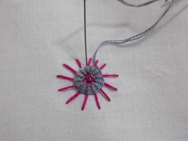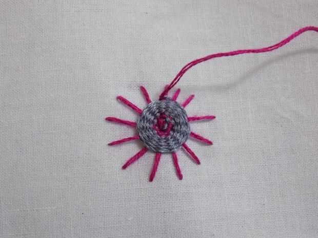 Para cambiar colores, enviar tu hilo hacia atrás después de ir sobre uno de los puntos del rayo de sol.