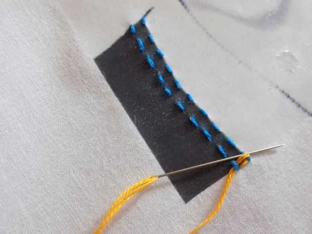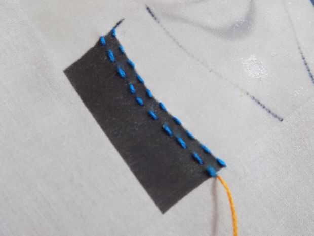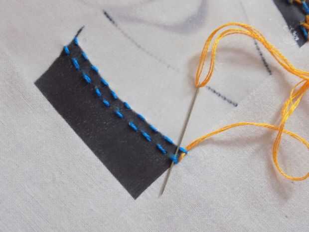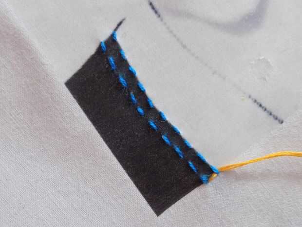 Entrar por el final de uno de sus filas de puntadas de funcionamiento de la parte posterior. Llamaremos a esta columna A y la otra fila de B.