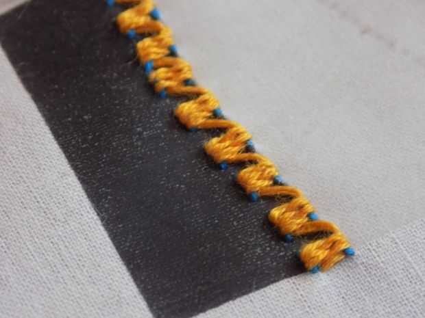 Una vez que hayas rellenado las primeras puntadas, enhebrar su aguja bajo el la segunda puntada en la fila de enfrente y continuar hasta las segunda puntadas están llenos.