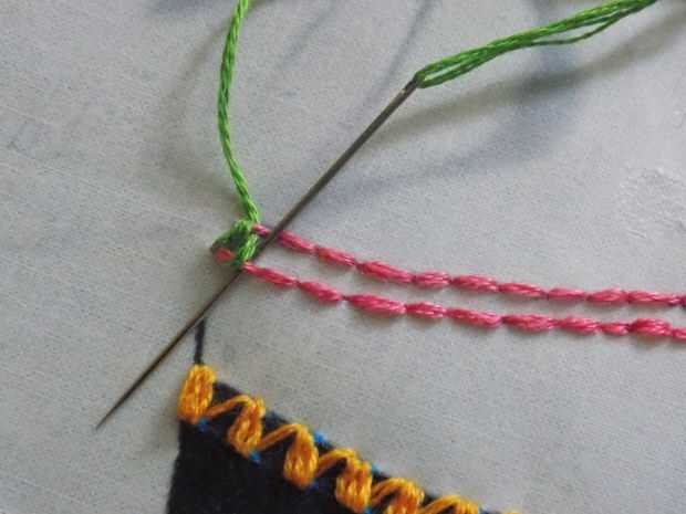 Bordado 101: Tejido de la espalda y tejido puntadas de funcionamiento (5 / 7 paso)