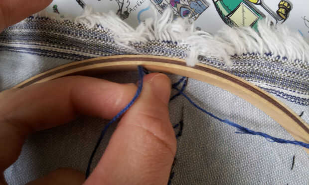 Una vez que coser, necesita mantener un ojo en su hilo de rosca todo el tiempo. Tire de ella a través de lentamente con cada puntada y parar si es incluso la más leve resistencia. Fácilmente puede desenredar un nudo espontáneo si cogerlo antes de que se han ajustado tirando de ella, pero una vez que ha apretado, no pueden tener ninguna opción pero para cortar el hilo y comenzar de nuevo. Cuando el hilo está por debajo de su aro, simplemente descansar dos de sus dedos en él como usted tire de él, por lo que debe deslizarse entre ellos antes de entrar en el tejido. Esto evitará que la mayoría de nudos. Otra vez, si detecta resistencia, detener e investigar.