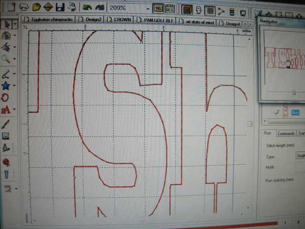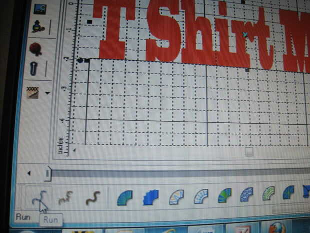 6. ahora necesitamos convertir nuestras ilustraciones en puntadas. Asegúrese de que su arte es seleccionado en la pantalla y encontrar el comando punto de funcionamiento en su programa. Haga clic en el botón ejecutar y que deben convertir su arte en líneas cosidas. (No seleccione las columna o puntadas opciones debido a que se rellene la carta completa con puntos de sutura y no es lo que usted quiere)