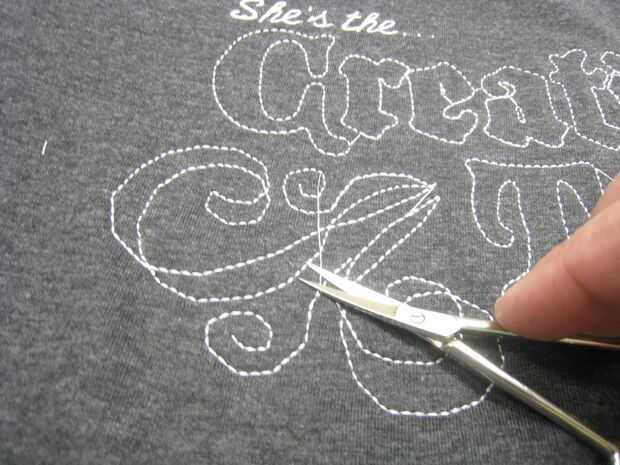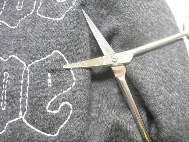 Recorte cualquier exceso hilos, asegurándose de que no cortar ningún puntos que podrían provocar su diseño a desentrañar.