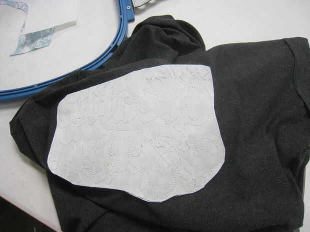 Tenga mucho cuidado durante el corte del material superior de la camiseta para que no corte a través de la capa inferior de la tela.