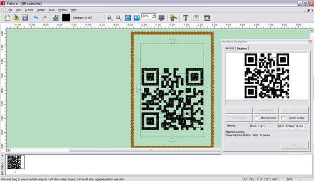 pañuelos con monograma son bastante elegantes, pero con un QR code? Es nerd cred. Elegante y escaneable.Hice esto usando el cantante Futura 250.Si usted tiene acceso a una máquina de bordado de la CNC, puede seguir mi bordado QR código instrucciones
