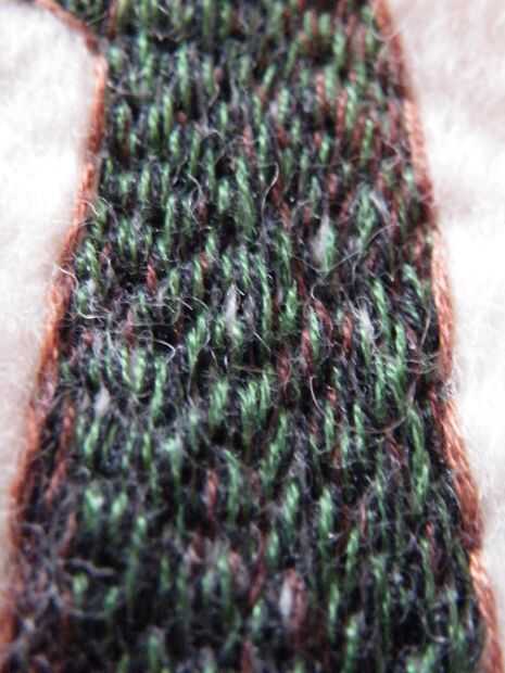 No usar un bastidor o aro, acaba de celebrar el fieltro enseñado a mano mientras cosí. Tuvo... horas. Se me olvida cuantas, pero era mucho.