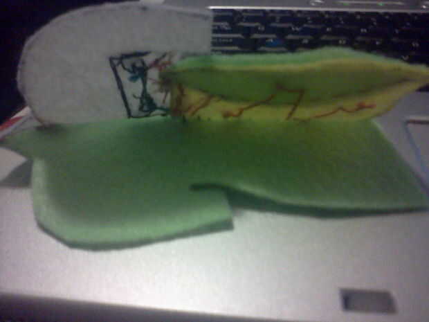 Aquí puede ver el interior de la muñeca que poco se rellena. Este es un lado completo de la manta de muñeca cosida.
