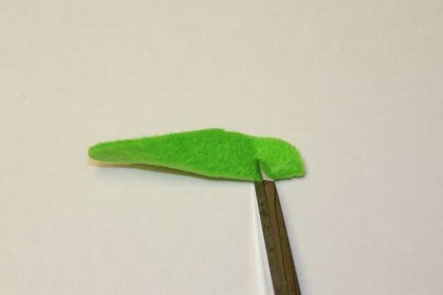 Doble un pedazo de fieltro por la mitad longitudinalmente y hacer un pequeño corte en la parte superior de fieltro