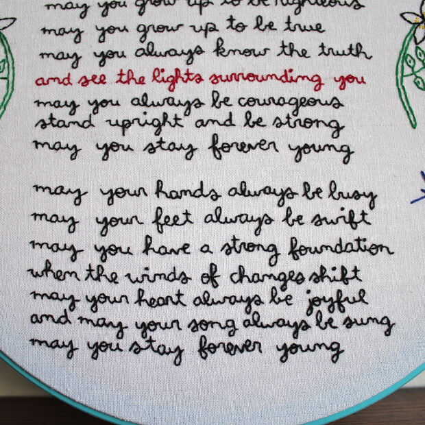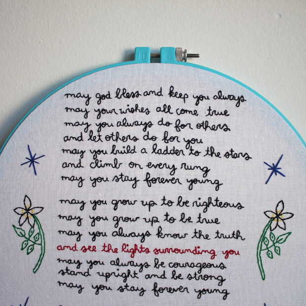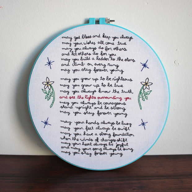 Bordado "forever young" por bob dylan (7 / 7 paso)