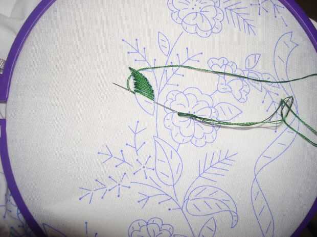 Si tengo dos fundas de almohada costura del mismo diseño que cose todo coloreado flores u hojas en ambas fundas trabajando hacia adelante y hacia atrás entre los 2 casos así que emparejan, siguiendo las instrucciones para el kit.