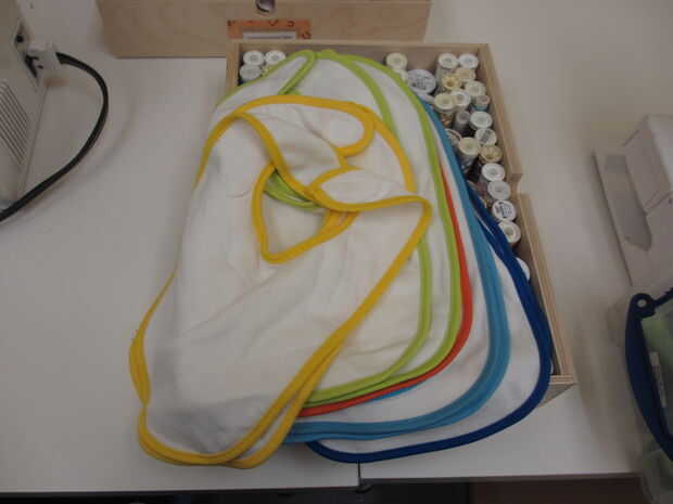 Algún retazo a hacer lindos baberos y toallas de uso.Hay un montón de vídeos sobre cómo coser esquinas, atascamiento, etc. en línea, así que Échales un vistazo si se atranca o prefiere un método diferente.Si utilizas planchados o algo como eso, por f