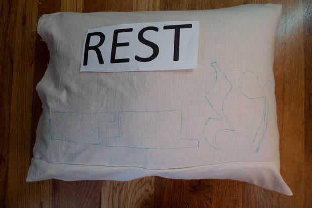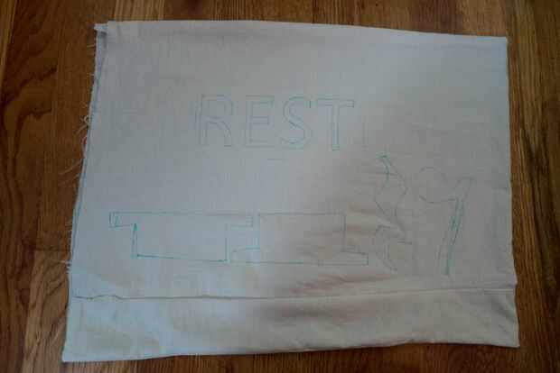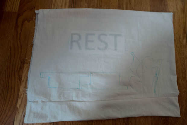 Pongo el patrón de la palabra dentro de la funda de almohada y desde mi tela era delgada podía rastrear las palabras con mi marcador.