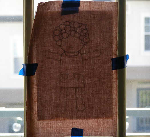3. trazar patrón Robyn a la tela de la muselina con una cinta de muselina sobre el patrón en una ventana soleada (o use una caja de luz convencional).