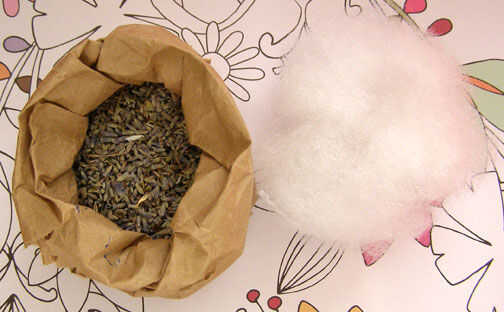 7. Junte ambas piezas de tela derecho contra derecho. PIN y coser la muñeca, dejando abierto el ancho de los dedos dos en la base para el relleno. Gire a la derecha hacia fuera, relleno con lavanda seca y polyfil. Muñeca de punto cerrado.