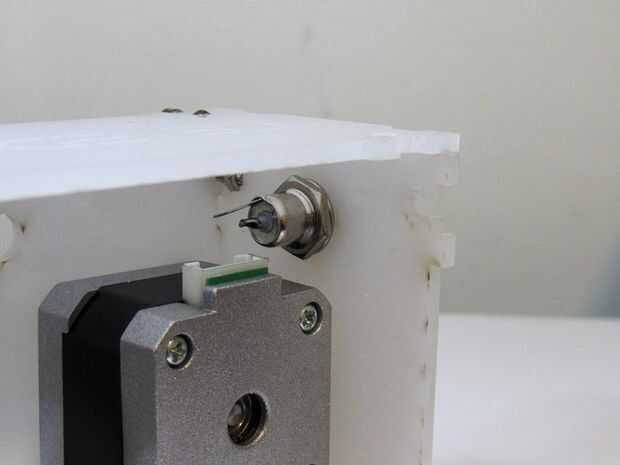 Puerto USB de montaje y la toma de corriente. Para ello el extensor USB B y colocarlo en el orificio rectangular de la pieza de acrílico lateral y poner los tornillos a través de. Puede utilizar las imágenes como referencia. Ahora, para montar a la toma de corriente, empuje el conector a través de la pieza posterior (uno con "hecho en Canadá" en él). Luego, enrosque la tuerca correspondiente en el conector de entrada de energía.