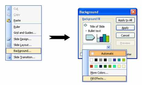 2. para elegir el fondo de la luz del día, haga clic derecho en cualquier lugar de la diapositiva (pero no en el carro del pobre) y seleccione 'Fondo' para que abra su pequeño menú emergente. Ahora, sólo tienes que seleccionar un relleno apropiado - al igual que hemos estado utilizando los gradientes. Usted puede utilizar algunos de los ajustes preestablecidos en este caso. Ya hay una preselección para luz del día.