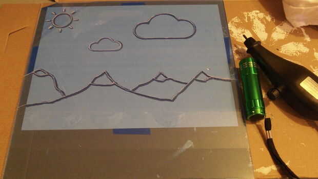 Dibujar o imprimir un diseño sobre un trozo de papel y cinta adhesiva en la parte posterior del acrílico