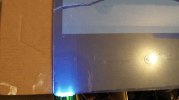 Poner una linterna en el borde del acrílico y colocarlo para que la luz está resaltada en las líneas grabadas