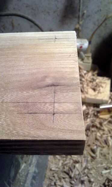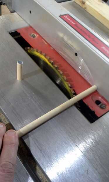Corté mis tacos de una clavija de 1/2" roble que tenía que poner alrededor. Luego pegué los tacos en el tablero inferior al ras con la parte inferior del tablero.
