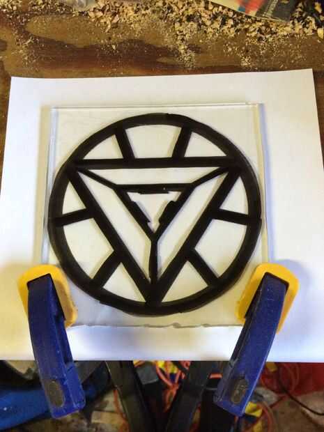 Una vez que el papel alineado con el acrílico, ajustar ambos firmemente a su banco de trabajo, asegurándose de que el papel quede en la parte inferior. Luego vas a tomar la "esférica" broca con punta de Dremel y girar a una velocidad manejable, puse minas en cerca de 12. Coger la Dremel todo el contorno de la plantilla. Una vez que hayas delineado lo, empezar a rellenarlo. Mientras que llena en es una buena idea para hacer movimientos rápidos. Fui lento y había hecho un montón de hoyos y errores en el acrílico.