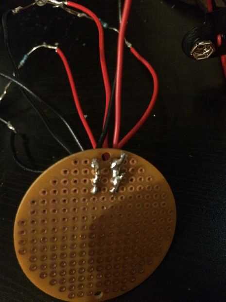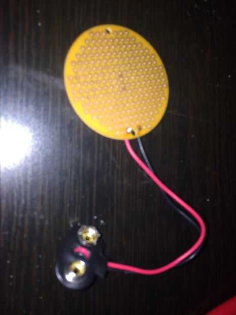 A continuación, tomar el rendimiento y la soldadura de la. 9V ajustar a uno de los extremos. Luego conecte los cables de la resistencia, en paralelo, en el extremo positivo de la presión de la batería. Asegúrese de que todos están soldadas a la placa perf. Luego tomar todos los cables GND y soldarlos en el lado de tierra del cierre de la batería.
