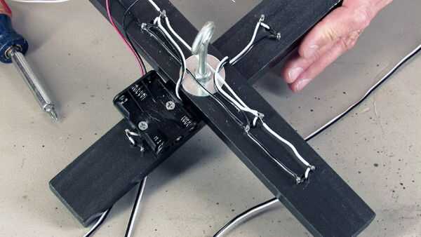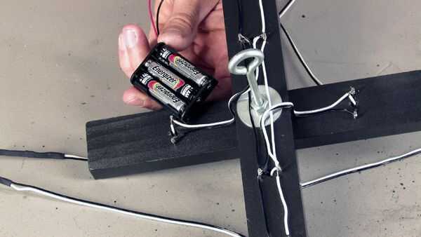 1) Coloque el soporte de la batería contra el soporte superior y atorníllelo en su lugar. Suelde el cable rojo a cualquiera de las conexiones positivas y el cable negro con cualquiera de las conexiones negativas. Coloque las baterías y comprobar que todo sigue trabajando.