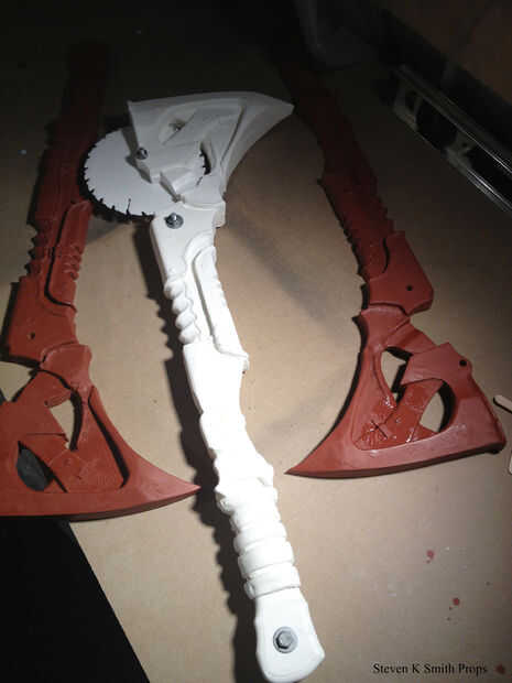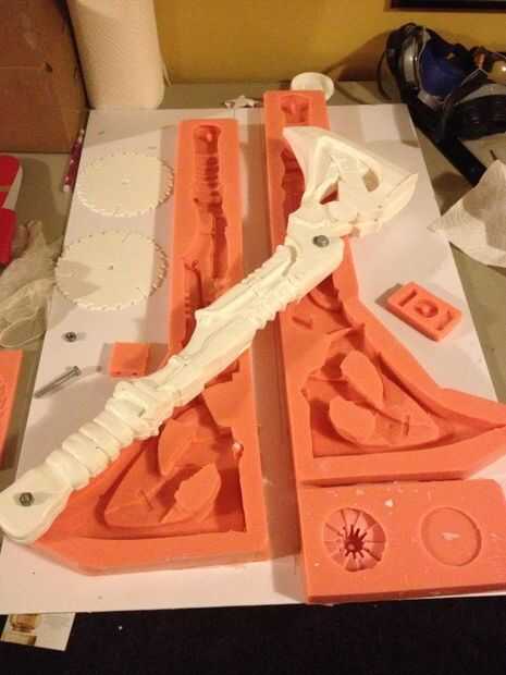 Yo prefiero usar productos de Smooth-On para mi moldeado y fundición. Para este proyecto utilizo 25 liso-de rebote para el molde de silicona y Smooth-Cast 300 para la resina del molde. Hay 14 piezas individuales del molde para hacer una sola hacha y estoy realmente contento con cómo salió el elenco.