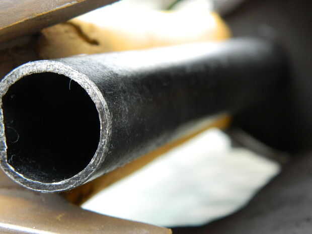 Luego fue el tema del cañón y el gatillo que me había olvidado de. Puesto que el gatillo era casi imposible ver claramente en cualquiera de las imágenes de referencia, no tuve ningún problema lo que componen enteramente. En cuanto al cañón, el plan era sólo utilice algunos tubos metal tuve que mentir en el garaje y el tiempo en que se vea grasiento y más oscuro hacia el final, que lo hice con una lata de pintura negra de spray y un trapo para frotar alrededor del metal, dando un patrón mucho más orgánico.
