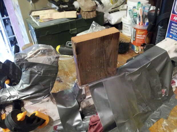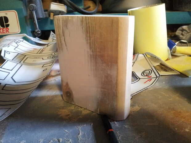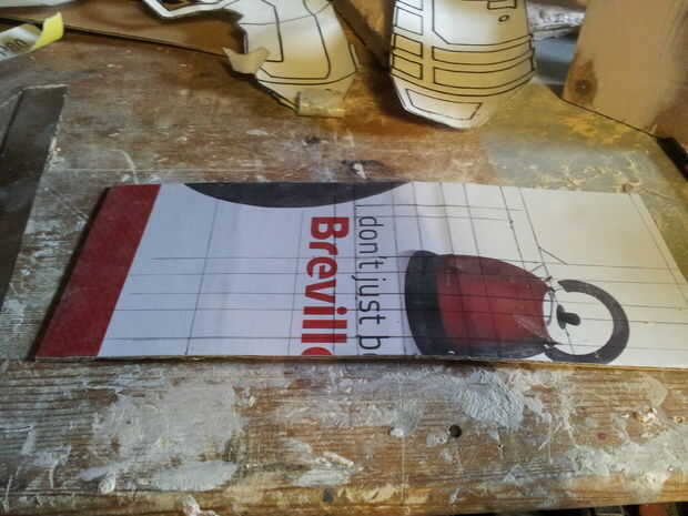 Esto fue una parte muy sencilla para hacer en comparación con algunos de los demás, fue simplemente un caso de corte de la forma básica de un bloque de madera, relleno para quitar el grano y luego algunos detalles simples. Utilicé mi lijadora orbital que reduce mi tiempo de lijado, y también me permitió rápidamente cortar las esquinas en la parte delantera para crear esa forma agradable, angular que se puede ver en la cuarta foto. Planeé sobre el uso de cartón para hacer las capas externas, pero no cortar tan bien y no hubiera mirado derecho. Seguí de todas maneras como una plantilla. Necesitaba un material que era bastante delgada pero tenía un grosor y también fue lo suficientemente flexible como para envolver alrededor de la revista cómodamente en ángulos de 90°. Una fina lámina de plástico que saqué de una tina hizo el trabajo maravillosamente.