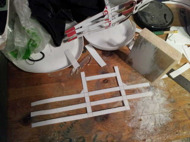 Clavó la envoltura a la base de la revista y utilizar Araldite para fijar abajo. Esto no porque la superficie era demasiado brillante. La lección es siempre áspero encima de una superficie lisa que desea pegar. Finalmente tengo que trabajar y había clavado el otro extremo de la envoltura en la parte posterior, disfrazar todas las uñas con otra hoja de plástico.