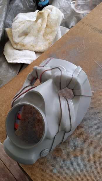 Antes de poder pintar tu máscara, usted necesitará el acabado de las últimas capas de imprimación y lijado. Tu probablemente preguntando ¿por qué molestan en el último paso si estamos haciendo más? bueno, es muy difícil de arena entre las tiras y lo que es suave, su mucho más fácil enarenar de cualquier pintura terrones entonces trozos de fibra de vidrio. Así que prime las tiras y empezar a lijar las espalda hasta allí listo para pintura, como lijar las zonas de la máscara donde se acumula la cartilla.