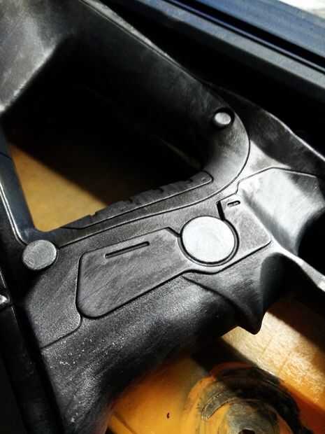 He aplicado a pincel seco en todas partes negros y azules, evitando los naranja porque tendría aspecto extraño (plata detalles en superficie de naranja son raros!).