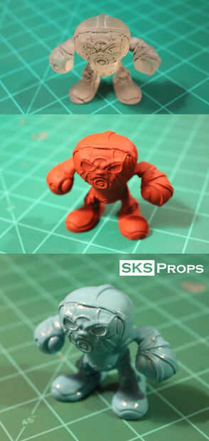 Así después de la impresión completa que tuve que limpiar el modelo con alcohol y recorte cualquier soportes adicionales. El cuerpo principal es bastante liso pero todavía tienes algunas estrías al igual que una impresora normal. Limpió con algunos diferentes granos de lija y luego rociar el modelo con algunos Krylon Rust coloreado cartilla. Después de este lijado húmedo continúa en la cartilla hasta que era muy suave y listo para la capa final. Para la última capa rocía el modelo con pintura gloss para que el molde de silicona recogería el detalle y los moldes saldria bonito y liso.