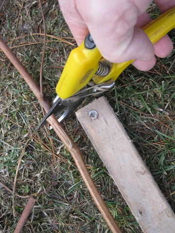 Comienzan en el espesor, corte el extremo de la vid y siguen recortando las secciones hasta que la vid llega a ser demasiado pequeña en diámetro. Generalmente no utiliza nada menos que el diámetro de un lápiz. A un lado las piezas que desea mantener. En otra pila, cortar el resto de la vid en secciones para la eliminación sin embargo es conveniente donde usted vive.
