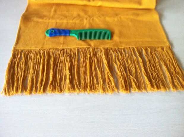 3. en posición plana sobre la mesa y las borlas del peine ya que está todo acurrucado debido a tirar de los hilos.