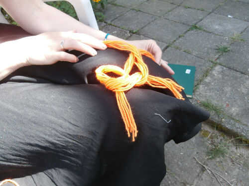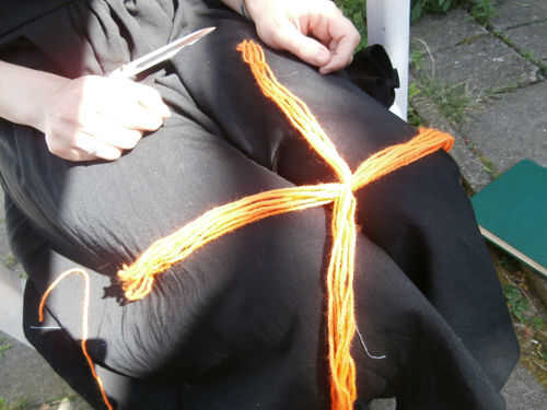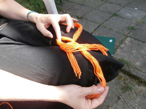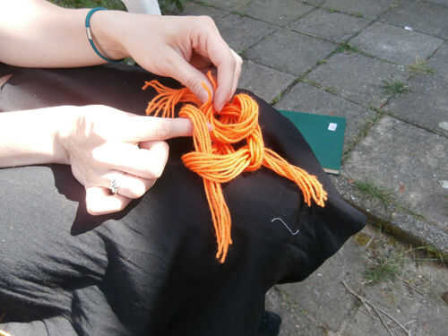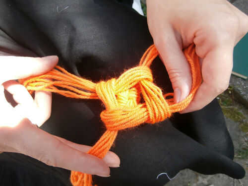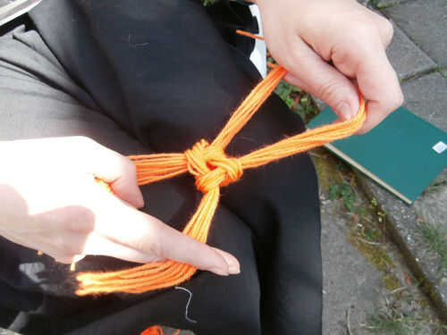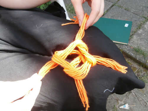 Ahora dividimos al fantasma en cuatro filamentos incluso. Luego procedemos a scoubidou.