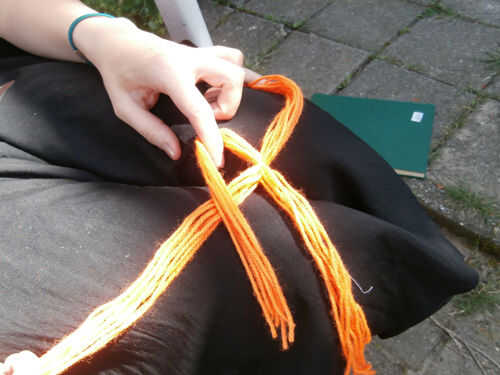 Ahora tome el filamento solo doblado sobre y doble sobre el tanto el filamento que había doblado justo encima y el filamento al lado. (Las imágenes son probablemente mucho más purificador que esta explicación)...