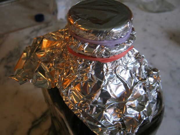 Cubierta con papel de aluminio.   Fije la lámina con bandas de goma.