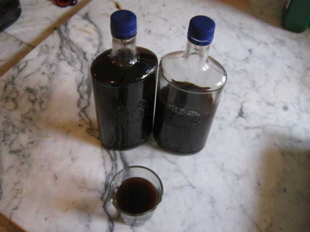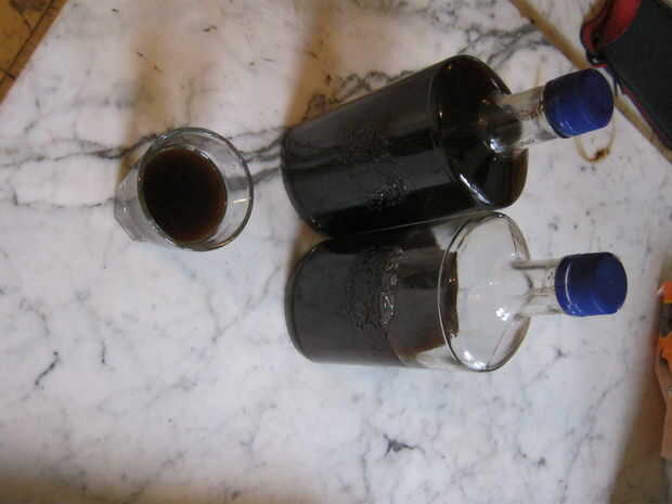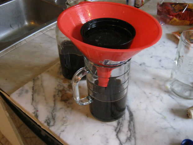 Agarrar las botellas spiffy en que el vodka vino, un embudo y un filtro de café. Coloque el filtro en el embudo y rellene las botellas de vodka. Terminé usando una jarra debajo del filtro. Dependiendo del tamaño del embudo que tienes y el tamaño del cuello de la botella esto no podría ser necesario.