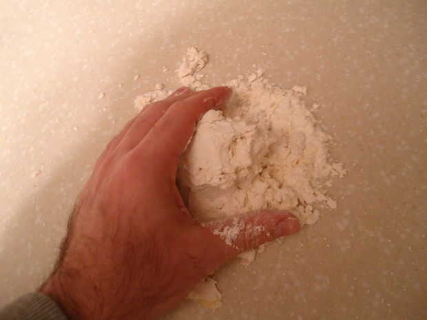Vierta el contenido hacia fuera en el mostrador y amasar la masa hasta que se absorba toda la harina.