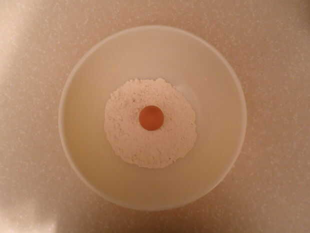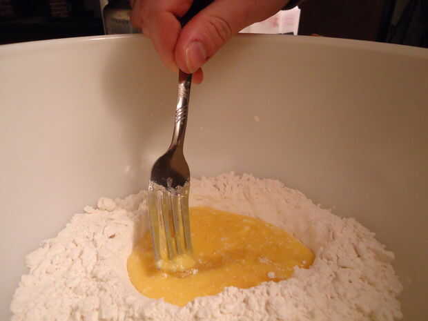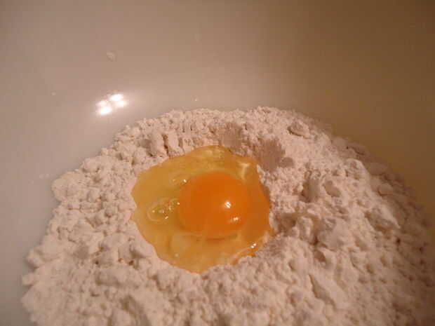 Forma un pozo en el centro de la harina y añadir el huevo.
