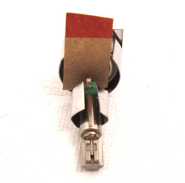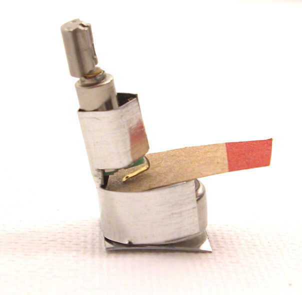 Primero doblar las lengüetas superior de la lata en forma de U así podemos áspero todo en su lugar. Luego coloque el motor para que el fondo es en firme contacto con la batería mientras el otro cable se presiona contra el metal de nuestras pestañas.