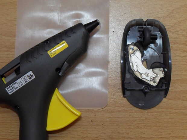 Coloque su magnet(s) en la parte inferior del interior del ratón, apriete de una carga de pegamento caliente de la pistola encoladora y permiten establecer. Usted podría super pegamento en su lugar, esto sin embargo puede ser quebradizo cuando se seca y puede romperse con los golpes contra el tablero.